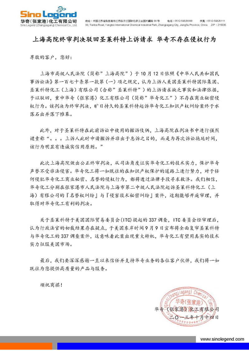 上海高院判决后_公告声明(致客户函)
